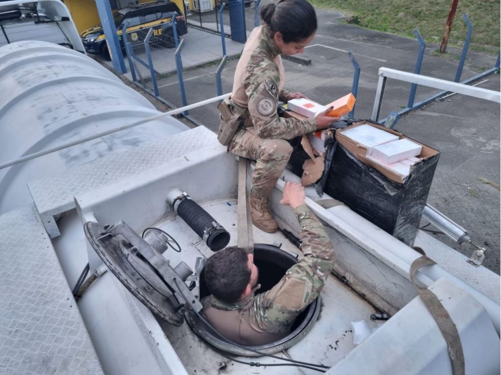Uma grande apreensão de produtos contrabandeados foi registrada na manhã desta segunda-feira (25) na BR-277, em Balsa Nova, região metropolitana de Curitiba. A Polícia Rodoviária Federal (PRF) interceptou um caminhão-tanque carregado com aproximadamente 4.500 aparelhos celulares escondidos no compartimento do veículo. A abordagem ocorreu durante uma fiscalização de rotina na Unidade Operacional de Balsa Nova. O caminhão-trator, um Mercedes-Benz Axor, acoplado a um semirreboque-tanque, chamou a atenção dos agentes, que decidiram realizar uma vistoria mais detalhada. Durante a inspeção, foram encontradas diversas caixas de celulares escondidas no interior do tanque.