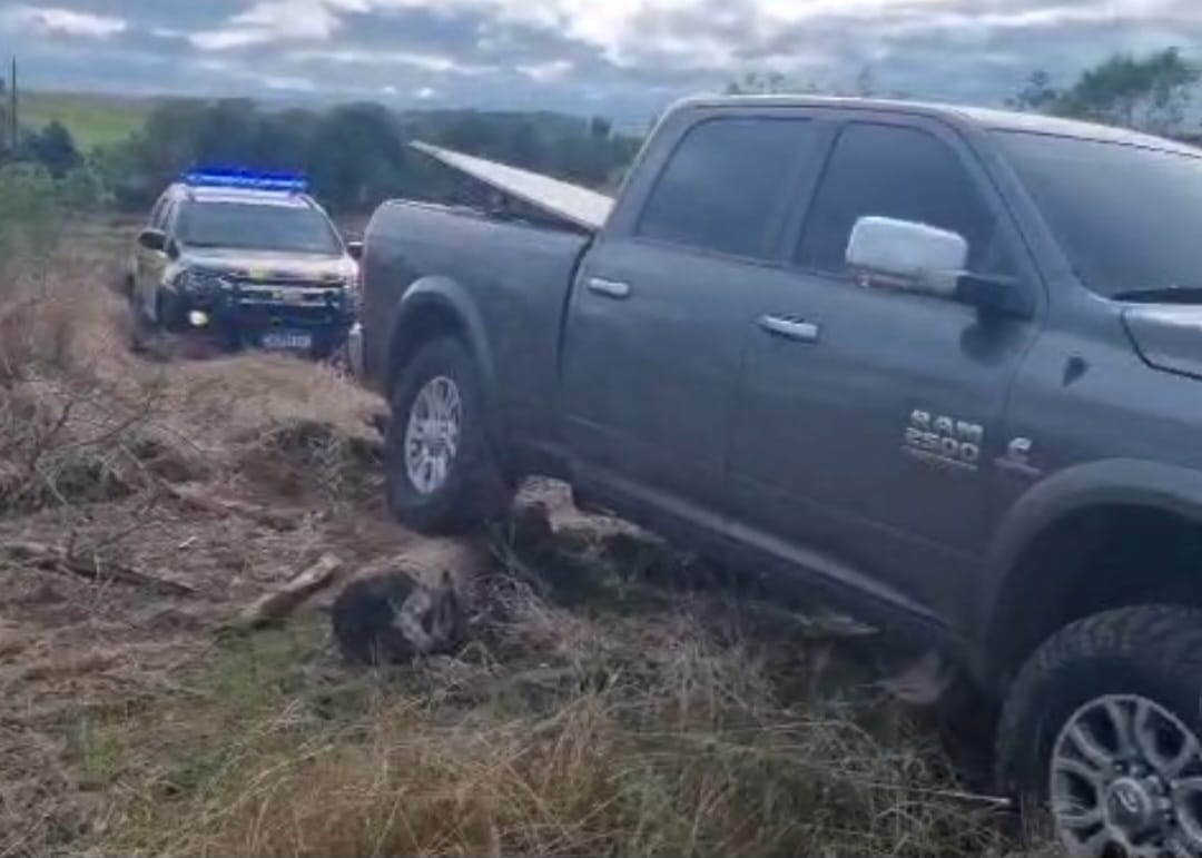 Durante fiscalização em uma praça de pedágio, por volta das 8h30, os policiais perceberam quando o veículo realizou uma manobra de ré em contramão e tentou fugir da abordagem. Houve perseguição, e o condutor perdeu o controle da caminhonete em uma área de pasto às margens da rodovia.