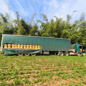 A Polícia Militar recuperou um caminhão roubado na manhã deste sábado (29), por volta das 7h30, na área rural de Campo Mourão, nas proximidades do Anel Viário. O veículo, um caminhão Scania com semirreboque da transportadora JE JB Transporte, foi localizado abandonado em meio a uma plantação de soja, próximo à Fazenda Campo Bandeira. A carga — tonéis identificados como pasta de tomate — também estava no local.