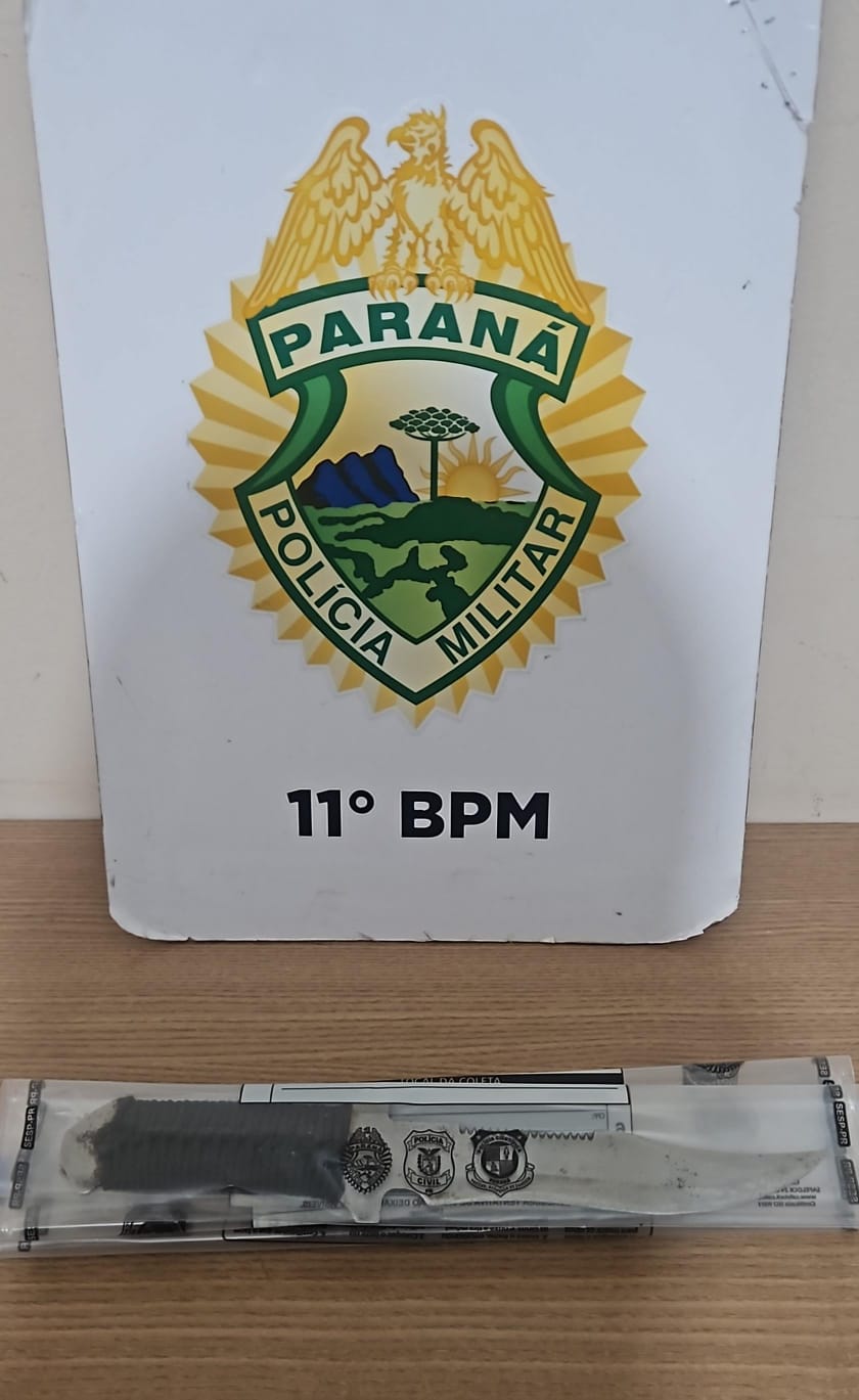 O agressor, de 38 anos, foi detido e encaminhado à 16ª Subdivisão Policial de Campo Mourão, junto com a arma branca apreendida.