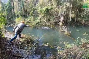 Um morador da região de Paranavaí, no Noroeste do Paraná, passou por um grande susto durante uma pescaria em uma área de mata densa, na Estrada Cristo Rei, região da Água Geanina.