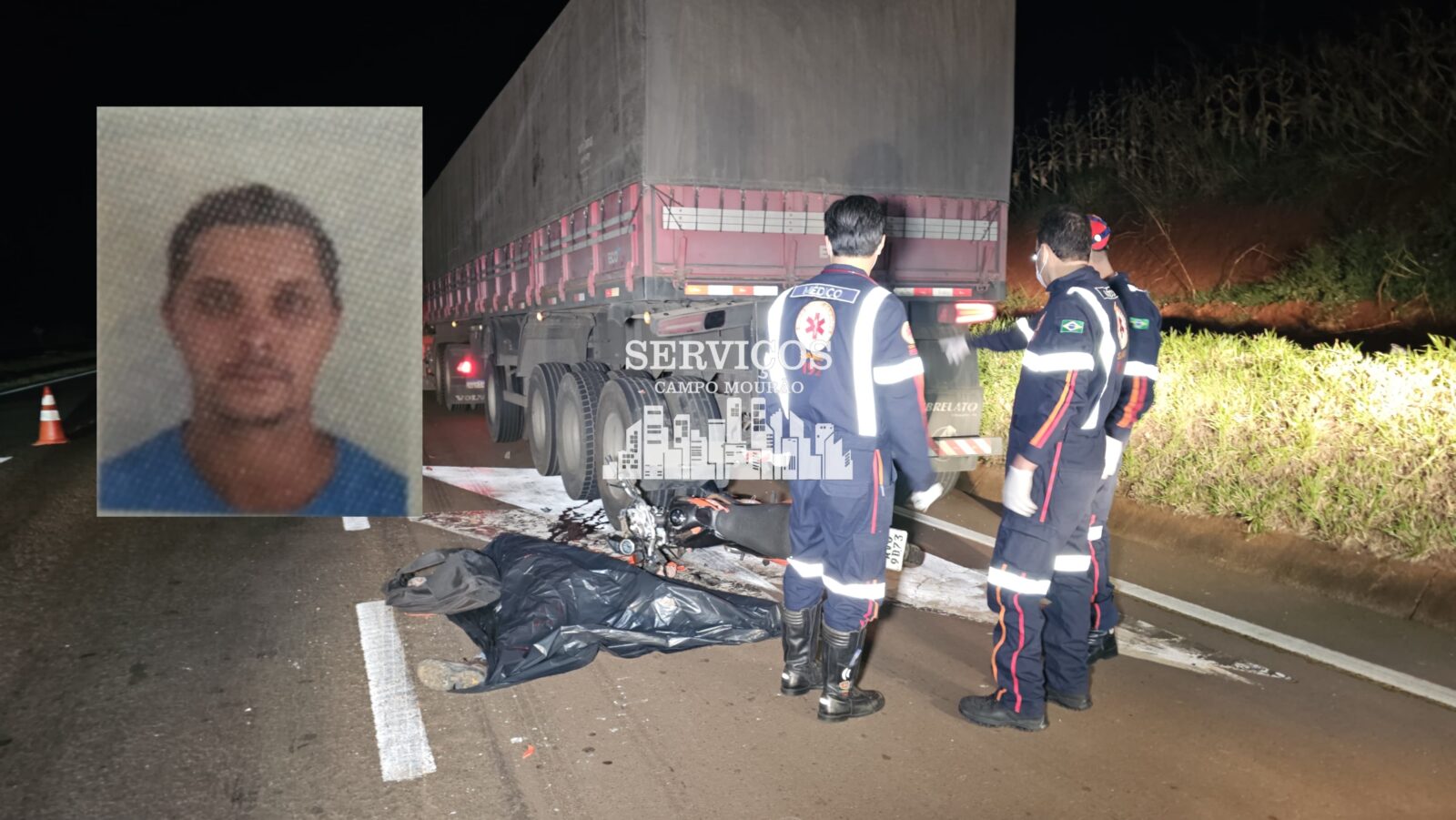 De acordo com informações preliminares, tanto a motocicleta quanto a carreta seguiam pela PR-082, sentido Terra Boa – Engenheiro Beltrão. Ao acessar a PR-317, o caminhoneiro, de 46 anos, que aguardava no acostamento para cruzar a rodovia, foi atingido violentamente na traseira pelo motociclista que vinha logo atrás.
