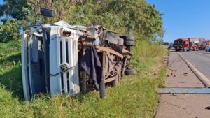 O condutor do caminhão sofreu escoriações leves e foi liberado no local. A Polícia Rodoviária Estadual sinalizou a via e coletou informações para a elaboração do boletim de ocorrência. Uma equipe da Polícia Militar da 5ª CIPM também esteve presente prestando apoio.