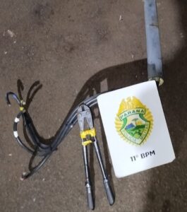 Um veículo VW/Gol branco, com as portas abertas, chamou a atenção dos policiais. Próximos ao local, dois indivíduos tentaram fugir ao avistarem a viatura, mas foram rapidamente alcançados e detidos. Com eles, foram encontrados um alicate corta-fio e diversos pedaços de fio, evidências claras de furto.
