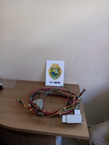 Durante a abordagem, os policiais encontraram com a dupla aproximadamente 30 metros de fios elétricos de 2,5 mm, já cortados e prontos para serem levados. Os dois homens foram detidos e encaminhados à 16ª Subdivisão Policial (SDP) de Campo Mourão, juntamente com o material apreendido.