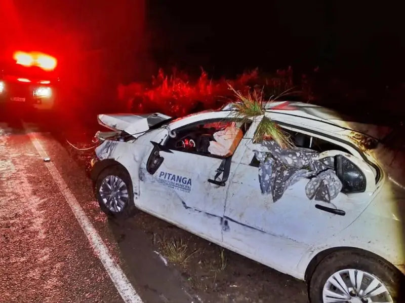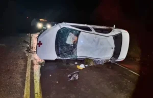 O trágico acidente do tipo capotamento foi registrado e atendido pela Polícia Rodoviária Estadual na madrugada desta segunda-feira, dia 28 de abril de 2025, na Rodovia PRC-466, na região do Município de Turvo/PR, município que fica entre Pitanga e Guarapuava, envolvendo um veículo Voyage, da Prefeitura Municipal de Pitanga, que prestava serviços para a Secretaria Municipal de Saúde e seguia de Pitanga para região de Curitiba.