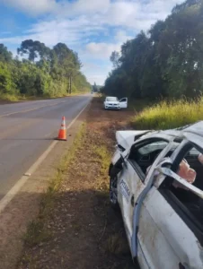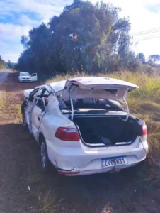 De acordo com a Polícia Rodoviária, trata-se de um veículo Voyage, que seguia pela Rodovia PRC-466, para Capital Paranaense – Curitiba, e que ao atingir o Km 231+800, no Município de Turvo/PR, o condutor que ainda não temos as informações de quem era, perdeu o controle da direção, e acabou capotando o veículo.
