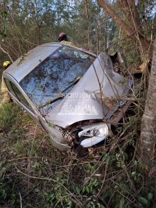 No início da noite desta quinta-feira, 04 de setembro, por volta das 18h15min, foi registrado um acidente do tipo saída de pista na rodovia estadual PR-323, em Cianorte. Segundo informações, o condutor de um Ford Fiesta perdeu o controle da direção, saindo da pista, caindo em um barranco e colidindo contra árvores e uma placa.