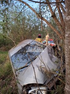 VEÍCULO SAI DA PISTA E COLIDE EM ÁRVORES NA RODOVIA PR-323, EM CIANORTE